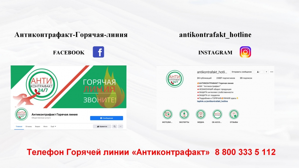 Государственная комиссия по противодействию незаконному обороту промышленной продукцией с целью создания объединенного сервиса для приема обращений граждан, представителей бизнес-сообщества организует работу горячей линии «АНТИКОНТРАФАКТ» с единым федеральным номером 8 800 333 51 12.