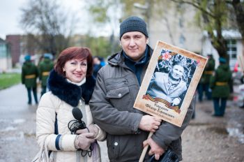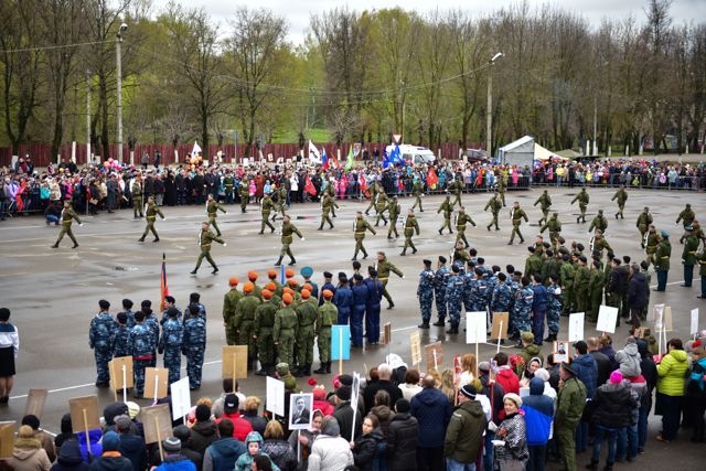 Утром 9 мая в Переславле состоялась акция «Бессмертный полк», которая проводится в России с 2014 года в память о героях войны. Участники акции начали свое шествие от военкомата и пронесли транспаранты с портретами своих родных, принявших участие в Великой Отечественной войне, до Народной площади. По подсчетам пресс-службы администрации города, в акции «Бессмертный полк» приняли участие около двух тысяч переславцев. В этом году шествие возглавил исполняющий обязанности мэра города Переславля-Залесского Владимир Волков. Портреты фронтовиков гордо несли их родственники, как совсем юные школьники, так и переславцы почтенного возраста. Под марши военного оркестра, в колонне прошли представители администрации, военных организаций города, представители полиции, МЧС, переславского казачества, кадеты, сестры милосердия и горожане, которые с гордостью несли портреты своих дедов. Несмотря на прохладную и пасмурную погоду, настроение у собравшихся было приподнятое. Переславцы вспоминали своих родных, рассказывая друг другу о подвигах тех, кто не вернулся домой со страшной войны, сражаясь за Родину.