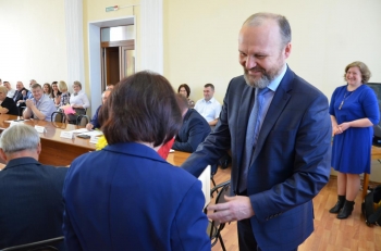 Перед началом планёрки Валерий Александрович поздравил председателя городской думы Сергея Корниенко с прошедшим юбилеем и вручил ему знак отличия «За заслуги перед городом». Затем глава городского округа поздравил коллег с Днём местного самоуправления, прошедшего 21 апреля, и отметил почётными грамотами «За большой личный вклад в развитие местного самоуправления в городе, добросовестный труд» лучших сотрудников управлений администрации города. После чего к докладам приступили представители оперативных служб.