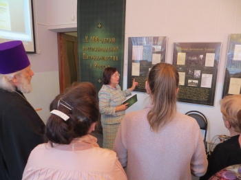 Историю создания выставки и её задачи, содержание 21 стенда поведала главный специалист Российского государственного архива социально-политической истории, д.и.н. Людмила Лыкова. Людмила Анатольевна провела подробную экскурсию по выставке и преподнесла в дар центральной библиотеке книгу — сборник материалов научной конференции «Восстановление Патриаршества. К 100-летию начала работы Всероссийского Поместного собора 1917 – 1918 годов». Организаторы выставки также определили задачи дальнейшего развития сотрудничества.