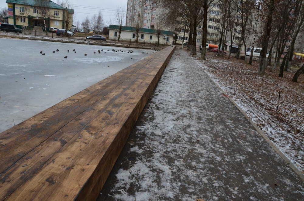 В сквере «Утиные пруды» сейчас монтируется освещение, убирается мусор, завершается обустройство парапета и ограждения у большого водоёма.