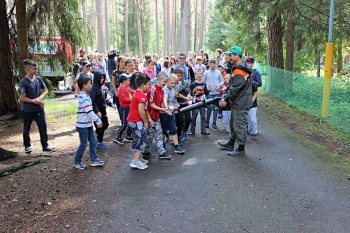 Перед тем как начать квест-игру, отдыхающих «Орлёнка» собрали около специального автомобиля сотрудников Лесной охраны, которые рассказали детям о видах пожаров, способах тушения, а также показали, с каким оборудованием им приходится иметь дело в своей работе.