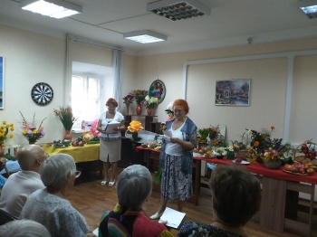 Ведущая Татьяна Васильевна Соколова рассказала, что праздник посвящен богатому урожаю и его главному герою, всеми любимому овощу – помидору. Она очень интересно поведала историю происхождения помидора, рассказала, когда он появился в России. Члены общества инвалидов, присутствующие на празднике, в стихотворной форме представили перекличку овощей в огороде, с искрометным юмором и очень точно рассказали о пользе овощей и фруктов. Гостям было предложено разгадать загадки, и тут участники дали волю фантазии. Ну, а самыми зрелищными стали презентации растительных композиций и рассказы о садово-огородных достижениях участников общества инвалидов. Они увлекательно и с любовью говорилми о том, как сажали, ухаживали, выращивали свой урожай, какие сорта предпочитают и как они называются. Демонстрировали домашние заготовки, щедро делились рецептами их приготовления.