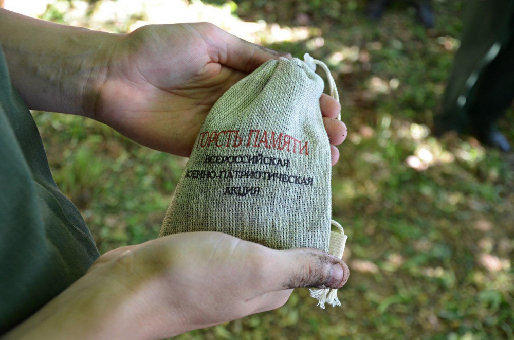 Накануне представители ветеранских организаций и вооруженных сил России и юнармейцы вместе с военным комиссаром осуществили забор сбор земли с воинских захоронений. Наполнение кисетов землей происходило с воинскими почестями, с возложения гирлянды к месту захоронения под аккомпанемент военного оркестра.