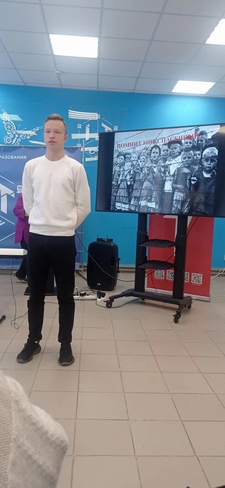 Преподавательский состав и студенты подготовили прекрасную программу. Встречу открыла преподаватель истории Ирина Милонджановна Субботина. Она представила присутствующим на встрече ветеранов и передала слово ведущей торжественного мероприятии, студентке колледжа из группы 222 ЧС, Ксении Городной, которая грамотно провела программу, рассказывая о демонстрируемых на экране концлагерях, во время Великой Отечественной войны расположенных на территориях Германии, Польши, Австрии и прибалтийских государств. В них содержались узники – дети, над которыми фашисты проводили медицинские эксперименты, забирали кровь для своих солдат, а затем сжигали в крематориях...