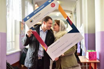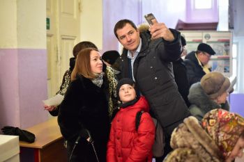 Пока шла беседа, одна из голосующих попросила сделать селфи вместе с главой, Владимир Михайлович с большим удовольствием согласился. Также он с супругой сфотографировался для социальных сетей и отдал свой голос за один из рисунков детского конкурса «Наш город ― наш двор».