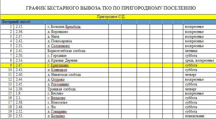 ГРАФИК БЕСТАРНОГО СБОРА ТКО