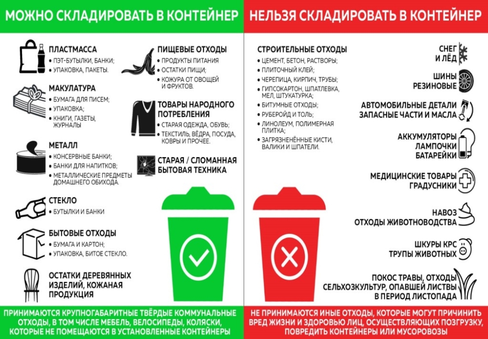✅ любые бытовые предметы, не позволяющие их поместить в мусорный бак.