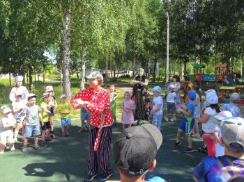28 июня детская игровая площадка в сквере за домом 51 в микрорайоне Чкаловский наполнилась ребятнёй. В этот день сюда пришли сказочные персонажи: Василиса Премудрая, Марья Искусница, баба Яга, Емеля и Мандаринка.