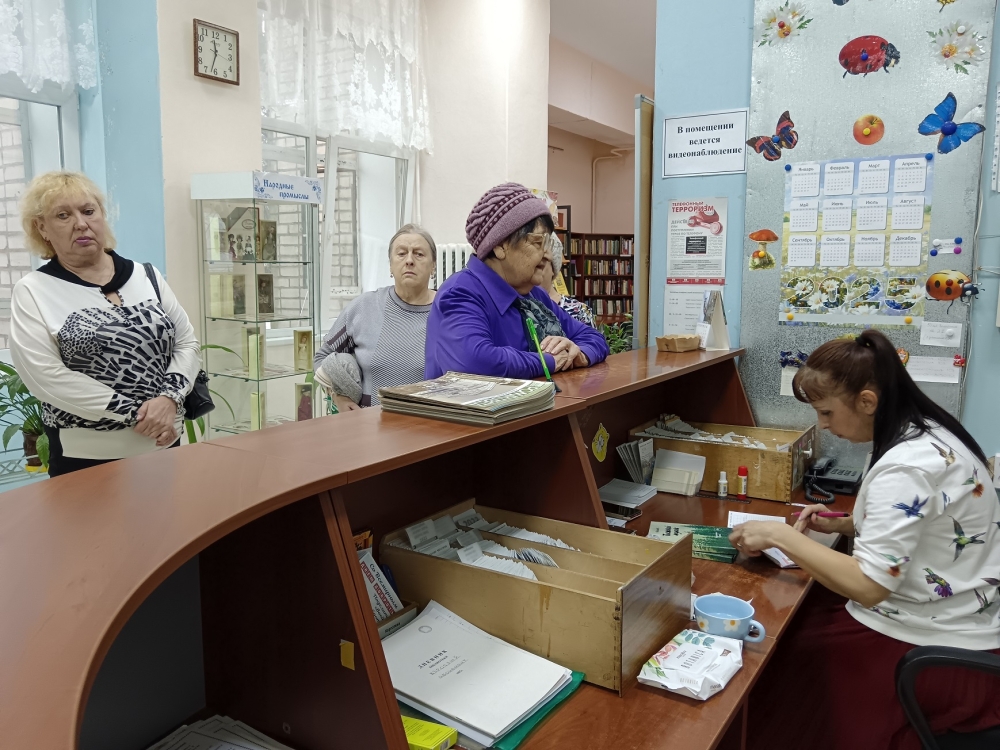 Гостей радушно встретили Любовь Андреевна Тютляева – директор МУК «Централизованная библиотечная система», Ольга Алексеевна Кручина – методист, Татьяна Борисовна Антонычева – библиотекарь, Марина Александровна Веденина – заведующая отделом библиотеки. Членам общества подробно рассказали о правилах поведения в библиотеке, куда необходимо пройти и к кому обратиться. Сотрудники библиотеки всегда готовы сопроводить, подсказать где можно выбрать нужную литературу. Татьяна Борисовна представила ряд книг, как в печатном варианте, так и на флэш-картах, которые адресованы непосредственно для членов общества слепых. Сразу нашлись и первые читатели.