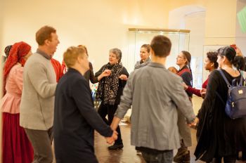 На открытии выставки выступил ансамбль «Дербеневка». Его участники изучают, фиксируют и популяризируют фольклор Верхней Оки, Калужской, Орловской и Тульской областей. Музыканты показали гостям выставки, как правильно играть на трещетках, бубнах, свистульках, щаркунках.
