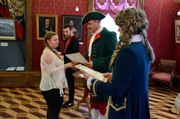После церемонии школьники отправились на экскурсию по залам музея-усадьбы «Ботик Петра I».