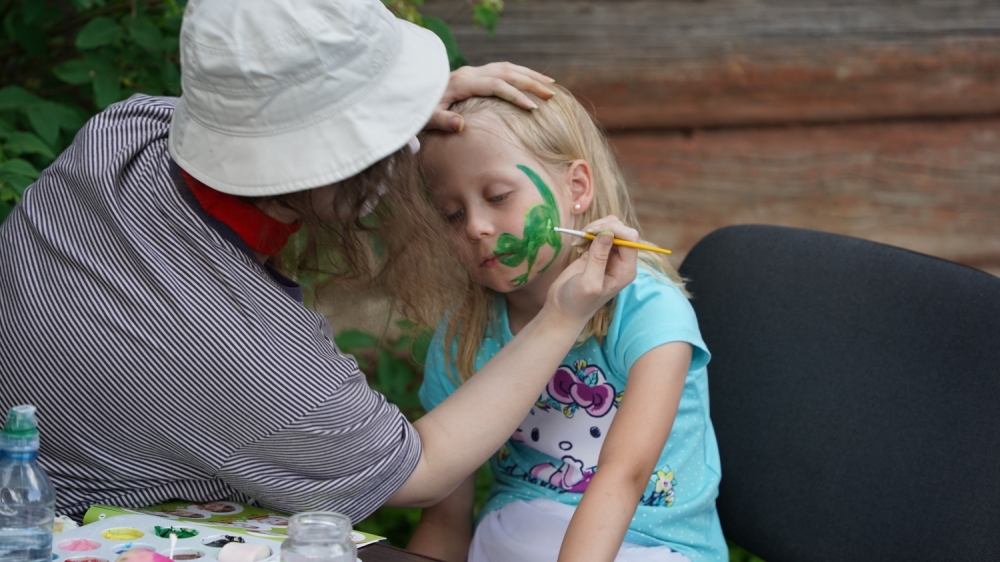 Для гостей праздника была подготовлена игра-бродилка по выставке репродукций работ Сергея Виноградова «Летние картины». Ответившие правильно на все вопросы получали в подарок набор открыток с картинами Виноградова. Автор викторины – сценарист, режиссер и ведущая этого летнего события Татьяна Полежаева.