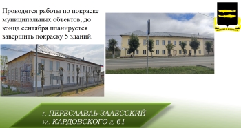 Начата работа по устранению нарушений на коммерческих объектах. Демонтированы два ветхих объекта и 12 фактически разрушенных строений. До конца сентября ожидается завершение всех необходимых мероприятий по благоустройству по целому ряду объектов. Идёт подготовка к покраске муниципальных зданий, планируется завершить эти работы ещё на пяти объектах до конца сентября.