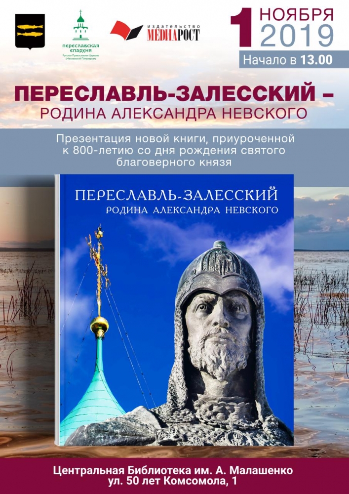 Издательство «Медиарост» (г. Рыбинск) представляет новое научно-популярное краеведческое издание «Переславль-Залесский – родина Александра Невского». Выход книги приурочен к 800-летию со дня рождения святого благоверного князя – нашего выдающегося земляка.
