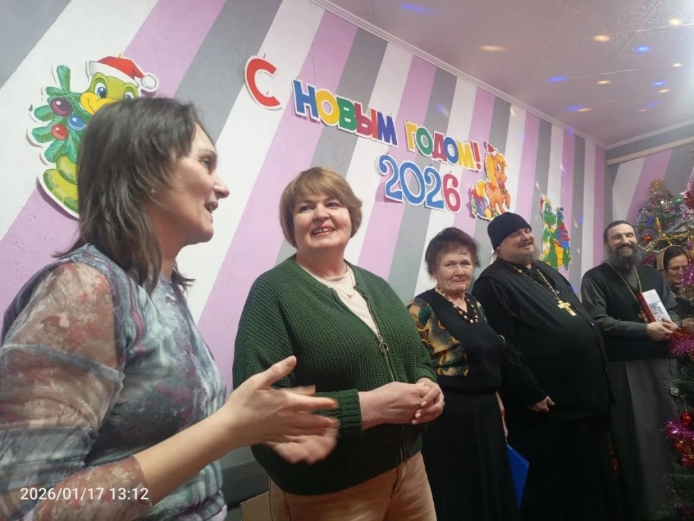 Отец Алексей и отец Игорь поздравили присутствующих с праздниками, вручили каждому по Рождественскому подарку и рассказали о значимости праздников и посещении богослужений в храмах.