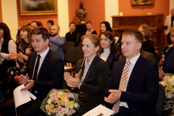 Перед началом еженедельной планёрки начальник управления культуры, туризма, молодёжи и спорта Александра Миниханова вручила знаки отличия Всероссийского физкультурно-спортивного комплекса «Готов к труду и обороне» сотрудникам администрации, которые в прошлом году сдавали нормативы ГТО. 17 Августа 2020 18:23