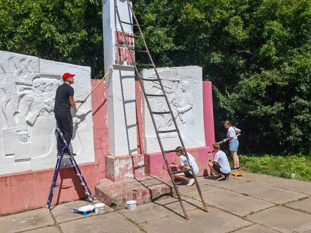 На территории прилежащей к обелиску было произведено выкорчевывание поросли, скошена и убрана трава. Памятник был очищен от пыли и грязи, произведена его пропитка и покраска.