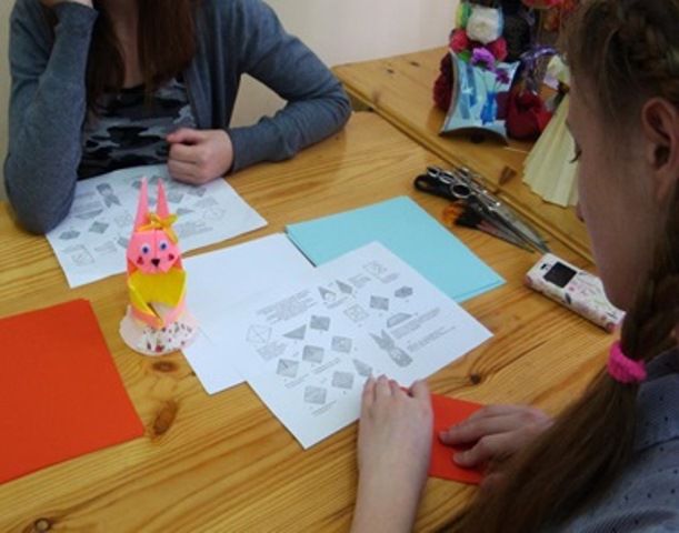 Вахрина Н.С. проводила занятие «Пасхальный кролик» в технике оригами. Ребята выполняли задание с помощью технологической карты. Работа велась в парах и индивидуально, а результатом стал кролик для пасхального яйца, который каждый обучающийся украсил, включая свою фантазию.