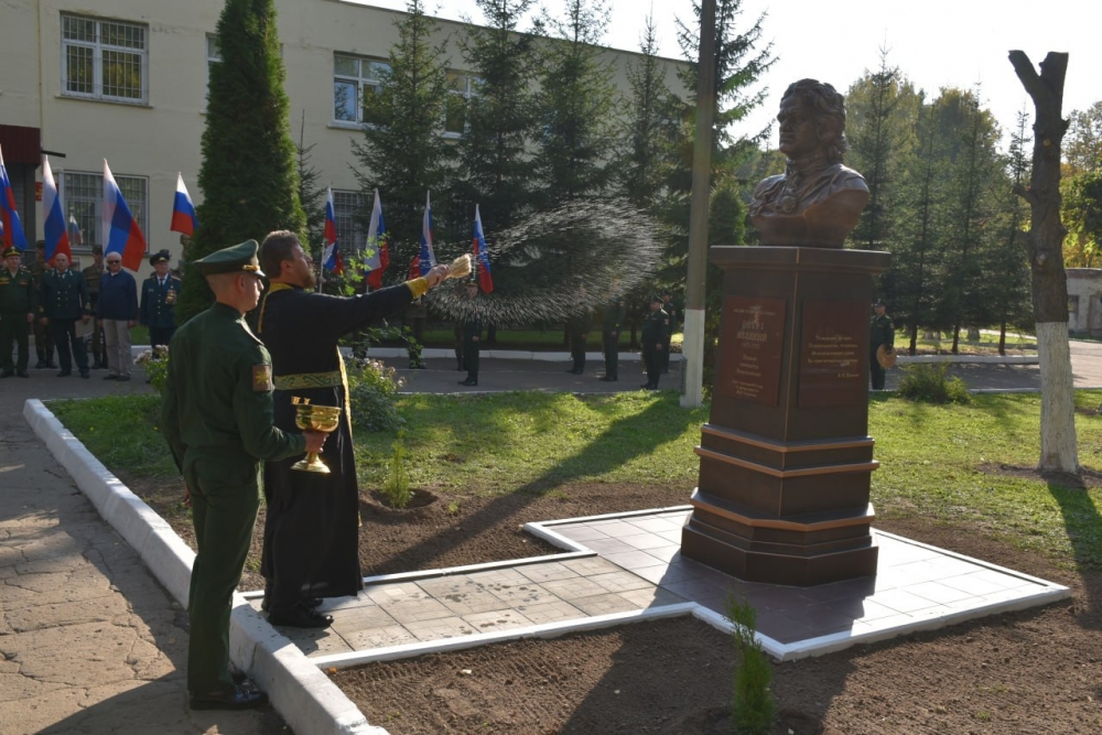 Бюст предоставлен воинской части в дар от автора проекта «Аллея Российской Славы» Михаила Леонидовича Сердюкова. Надпись на постаменте гласит: «Великий реформатор и полководец, превративший Россию в крупную и сильную европейскую державу». Это уже не первый памятник, установленный на территории учебного центра. Он станет еще одним элементом военно-патриотического воспитания молодежи и увековечивания памяти великих людей.