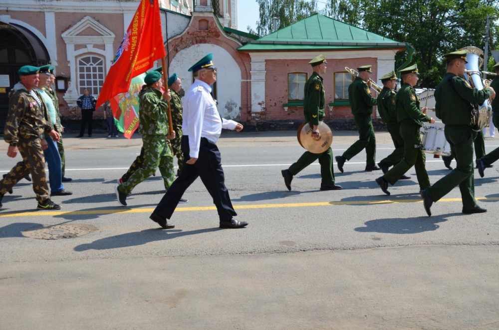 Далее ветераны службы проследовали традиционным шествием в сопровождении военного оркестра по главным улицам города под флагами пограничных войск и «Боевого братства» к Обелиску павшим воинам-переславцам в годы Великой Отечественной войны. По пути колонну приветствовали жители города. У обелиска состоялось построение участников шествия, которые почтили память защитников Родины минутой молчания и возложили цветы к подножию обелиска.