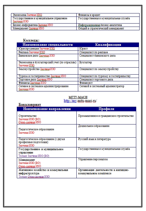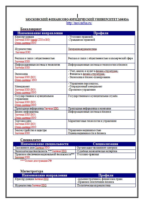 - Очно-заочная форма подготовки бакалавров по актуальным специальностям («Экономика», «Право», «Государственное и муниципальное управление», «Журналистика»).