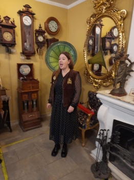 В «Музее музыки и времени» были представлены экспонаты от колокольчиков до механического пианино, раритетные музыкальные инструменты: шарманка, граммофон, патефон. Рассказ экскурсовода сопровождался не только демонстрацией работы рассматриваемых предметов, но и пением, игрой.