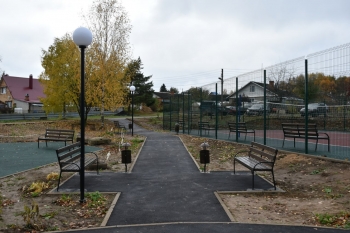 Здесь установлены две спортивные и две детские площадки, проложены дорожки, смонтировано освещение, установлены лавочки и урны. Теперь в сквере не проблема найти занятия по душе и детям и взрослым.