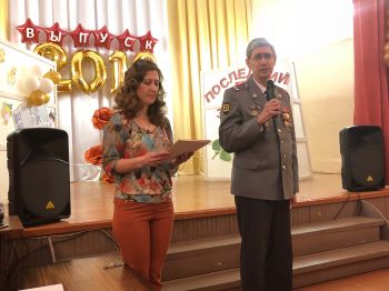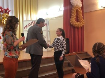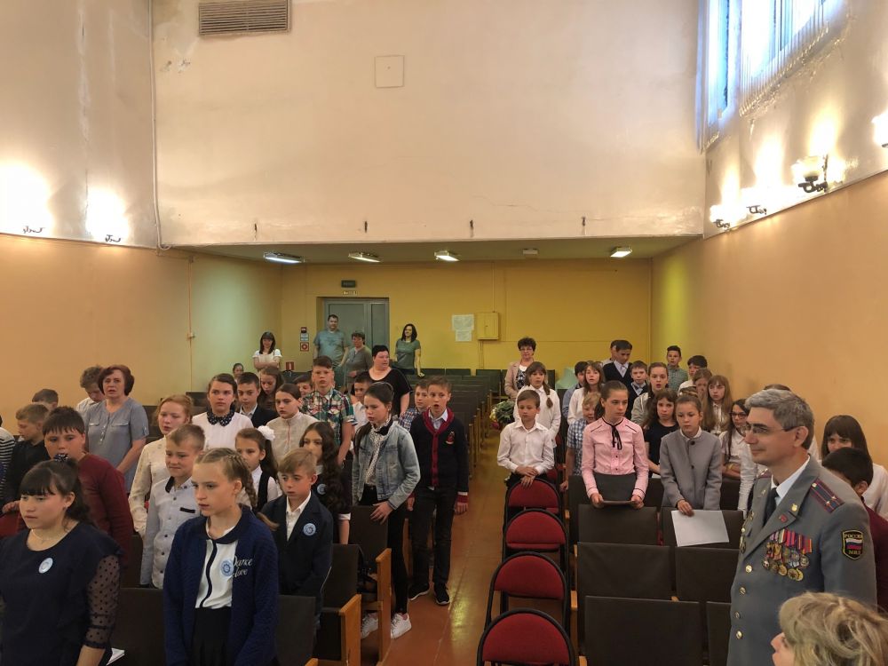 Гостем школы в этот знаменательный день стал ветеран МВД, подполковник милиции в отставке Вадим Николаевич Каминский. От имени городского совета ветеранов войны, труда, Вооруженных сил и правоохранительных органов он вручил ребятам и педагогам грамоты, за участие в подготовке и проведении торжественных мероприятий, посвященных 73-й годовщине Победы советского народа в Великой Отечественной войне. Также учеников наградили грамотами и дипломами за достижения в учебе, за активное участие в школьных и городских конкурсах. Завершением праздника по традиции стало исполнение гимна средней школы № 4.