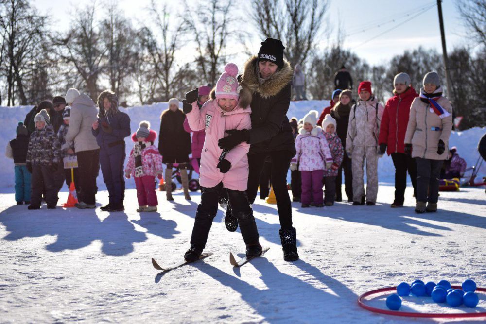 Первыми на импровизированную спортивную арену вышли команды родителей и воспитанников детских садов во главе с инструкторами по физической культуре и сыграли в «Снежный серпантин». А потом в «Гонку чемпионов» включились подростки. Под песню «Россия» волонтёры Молодёжного центра с российскими флагами дали старт игре.