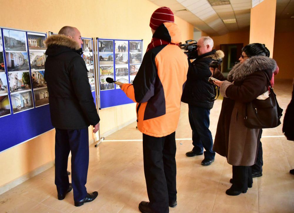 Общение началось в здании администрации. Максим Вячеславович рассказал журналистам о текущих проектах капитального строительства. Начали с улицы Дорожной.