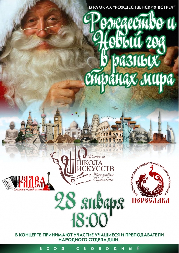 Детская школа искусств города Переславля-Залесского приглашает жителей и гостей города на концерт «Рождество и Новый год в разных странах мира», который состоится 28 января в 18.00.
