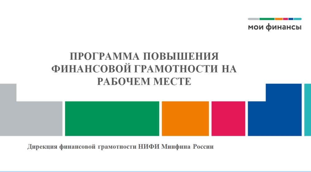 В рамках реализации Стратегии повышения финансовой грамотности и формирования финансовой культуры до 2030 года, НИФИ Минфина России была разработана, и успешно апробирована комплексная программа по повышению финансовой грамотности взрослого экономически активного населения «Повышение финансовой грамотности на рабочем месте».