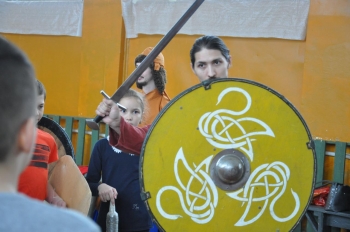 6 апреля в спортивном зале гарнизонного офицерского клуба юные богатыри показали свои знания и умения наставникам — участникам клубов исторической реконструкции «Залесье», «Лебединая сага» и «Вольный посад».