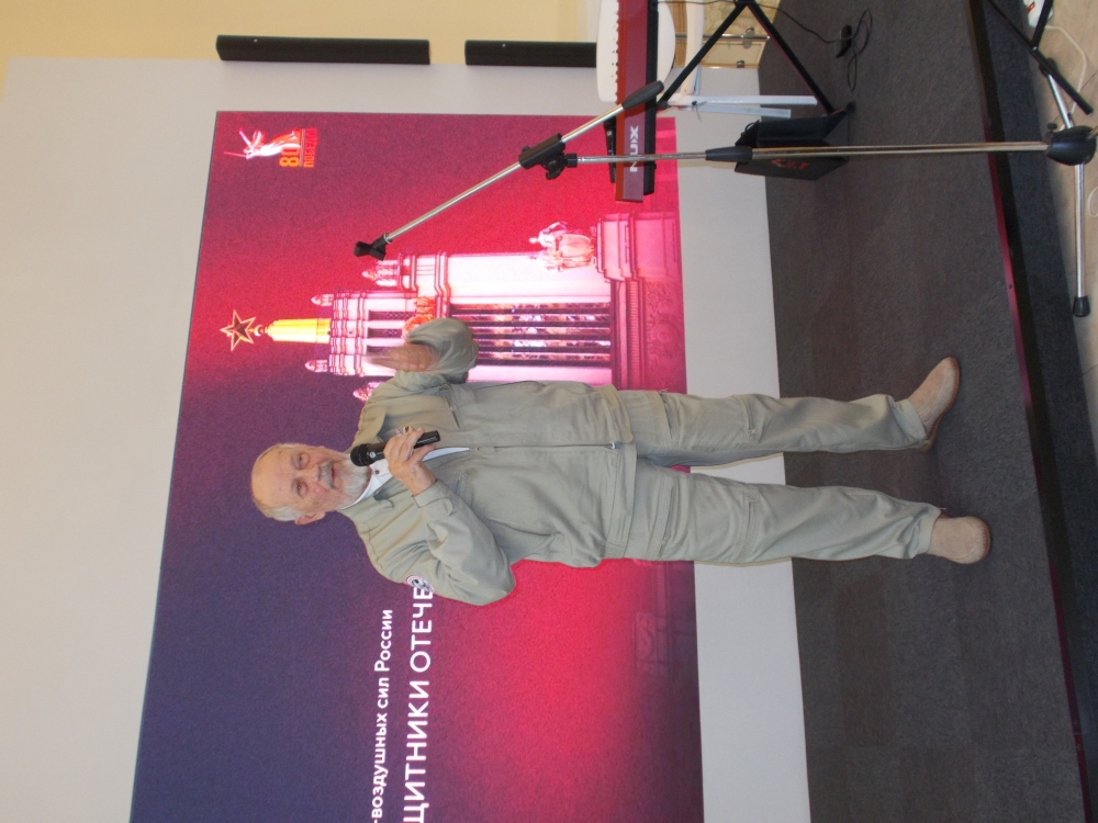 Поздравив участников конференции с Днем ВВС, он рассказал о своих ближайших планах по монументальному увековечиванию первых женщин-героев, юных героев-разведчиков времен Великой Отечественной войны и космонавтов Дважды Героев Советского Союза. В завершение выступления Игорь Баянов передал участникам конференции горячий привет от своих друзей космонавтов Дважды Героев Советского Союза Бориса Волынова и Виктора Савиных.
