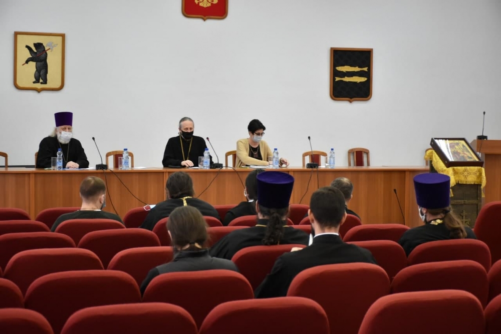 С приветственным словом к присутствующим обратились: глава городского округа Ирина Строкинова, епископ Переславский и Угличский Феоктист и протоиерей, руководитель отдела образования и катехизации Переславской епархии Александр Кривоногов.