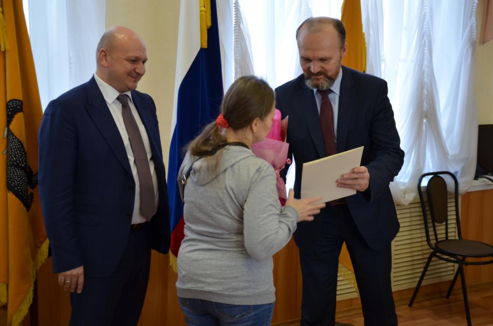 В четверг, 14 марта, директор департамента имущественных и земельных отношений Ярославской области Максим Фролов и глава городского округа Валерий Астраханцев в торжественной обстановке вручили документы о бесплатном предоставлении земельных участков для ведения подсобного хозяйства 15 многодетным семьям. Постановлений подготовлено 16, но одна семья не смогла приехать на церемонию вручения.