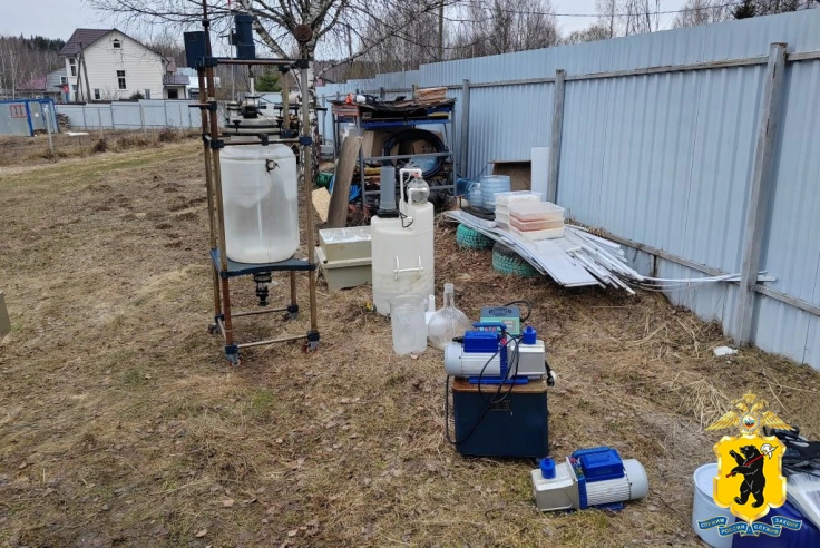 В ходе обыска на территории дачного участка, расположенного в Переславском муниципальном округе, в хозяйственной постройке, где злоумышленники осуществляли свою преступную деятельность, полицейскими обнаружено и изъято лабораторное оборудование и канистры с химическими реактивами, необходимыми для незаконного производства наркотических средств.