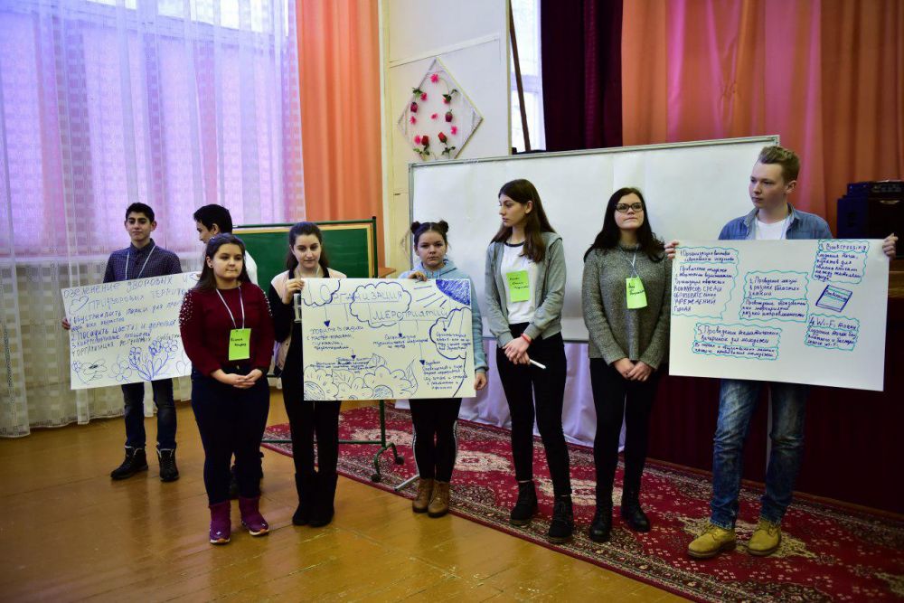 Первыми с презентацией выступили школьники. Одной из идей стало озеленение города и высаживания цветников, а также организация регулярных субботников. Ещё ребята предложили план-схему по организации городских и событийных мероприятий для молодёжи. Школьники изъявили желание заняться организацией туристских маршрутов и походов по изучению города и родного края.