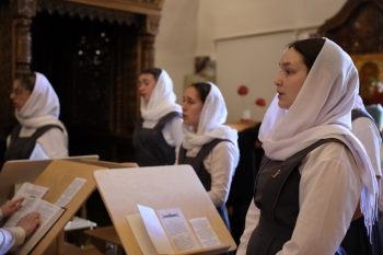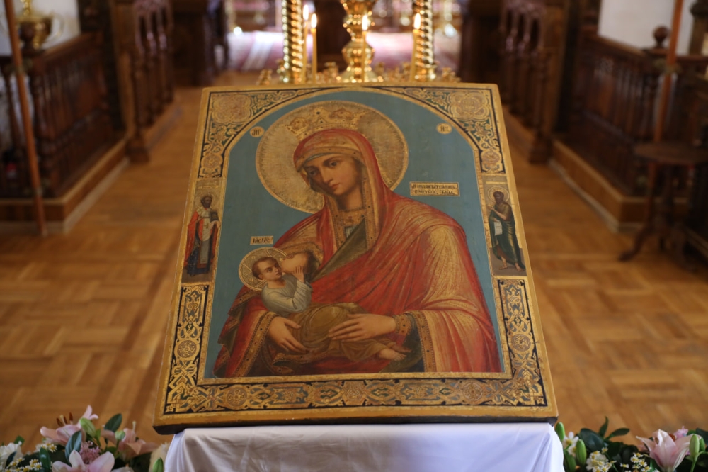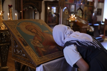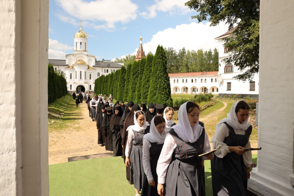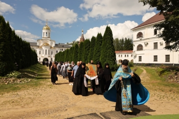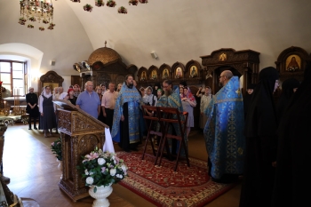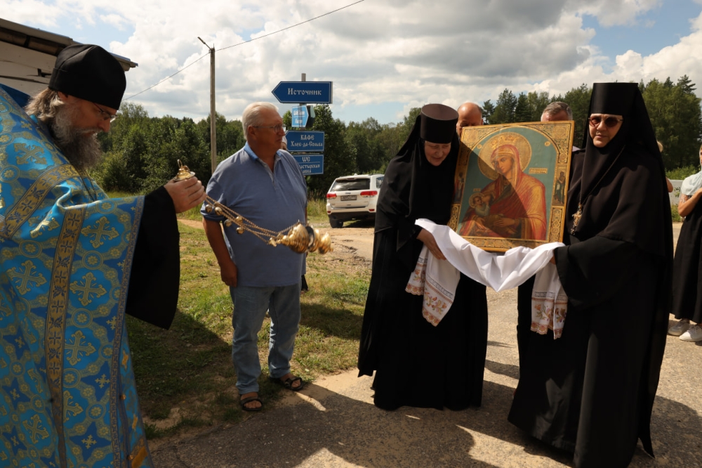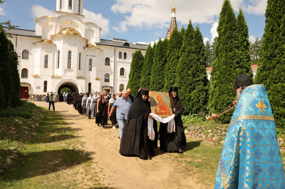 Под торжественный колокольный звон икону встретили священники, сестры, воспитанницы и прихожане монастыря во главе с Матушкой игуменией Еротиидой. В Успенском храме было совершен пара́клис – пение канона с акафистом.