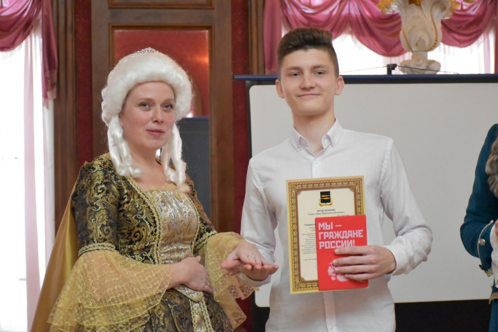 И сегодня в зале для торжественных приемов музея-усадьбы «Ботик Петра I» собрались 88 юношей и девушек, которые достигли успехов в учебе, спорте, культурной и общественной жизни, и которым исполнилось 14 лет.
