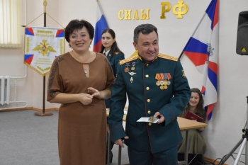 Алексей Викторович поздравил офицеров и специалистов, ветеранов службы, вручил памятные медали и почётные грамоты в честь 100-летия войск связи и за заслуги в становлении и развитии учебного центра, подготовку специалистов связи для Вооружённых сил Российской Федерации.