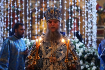Богослужение на Успение особенно благодатное и красивое. Его совершил епископ Исилькульский и Русско-Полянский Феодосий с клириками Николо-Сольбинского монастыря.