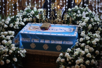 Подготовка к важной дате начинается за несколько дней до торжества. Сестры, воспитанницы «Доброй школы на Сольбе» и Первого православного колледжа украшают Плащаницу Божией Матери и все пространство храма живыми цветами.