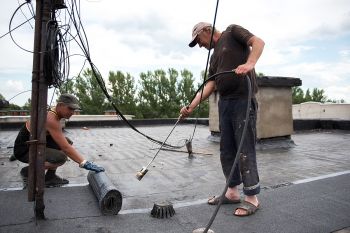 В доме №4 по улице Менделеева продолжаются ремонтные работы по замене кровли, начатые в июне 2017 года.