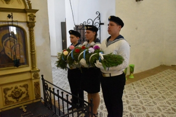 Следует упомянуть ещё об одном госте, принявшем участие в торжестве, директоре художественной мастерской, заслуженном работнике культуры РФ, Викторе Наумове из Златоуста. Он работает над созданием точной копии кортика адмирала Спиридова. Виктор Алексеевич рассказал, что планировал изготовить оружие к этому дню, но ситуация в стране и в мире немного сместила сроки. Кортик будет готов ко Дню Военно-морского флота и вручён настоятелю Преображенского храма.