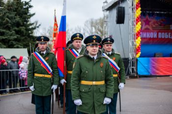 Торжественное праздничное настроение участникам и гостям Парада Победы задал сводный военный духовой оркестр, в состав которого вошли представители переславкой воинской части и Свято-Алексиевской Пустыни.