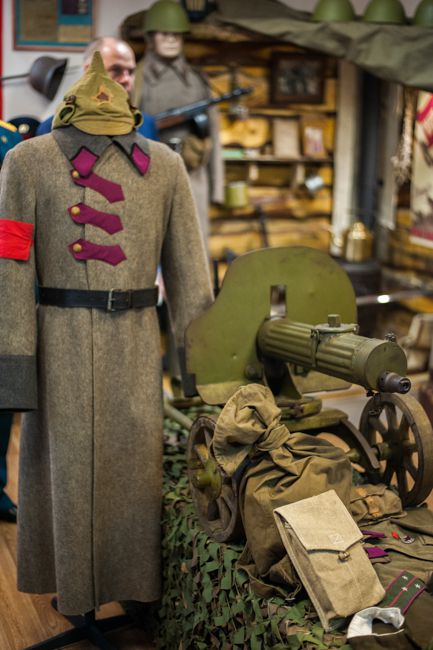 Оружие, униформа, амуниция и предметы быта 40-ых годов прошлого века. В музее представлены экспонаты из коллекции, которую собрал Эдуард Бакуменко - сотрудник пожарной части, по совместительству руководитель военно-исторического клуба имени Михаила Кошкина. Энтузиаст свою коллекцию собирал более 20 лет.