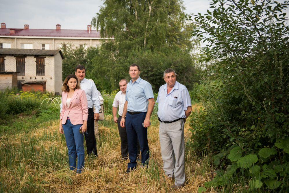 Далее комиссия проехала на ул. Красноэховскую. По плану благоустройства в этом дворе должна быть установлена хоккейная площадка. На данный момент двор представляет собой заросший травой пустырь с мини-огородами, на которых дозревает урожай. Но на этой неделе подрядчики уже должны приступить к работе.