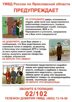 УМВД России по Ярославской области ПРЕДУПРЕЖДАЕТ о случаях телефонных мошенничеств.